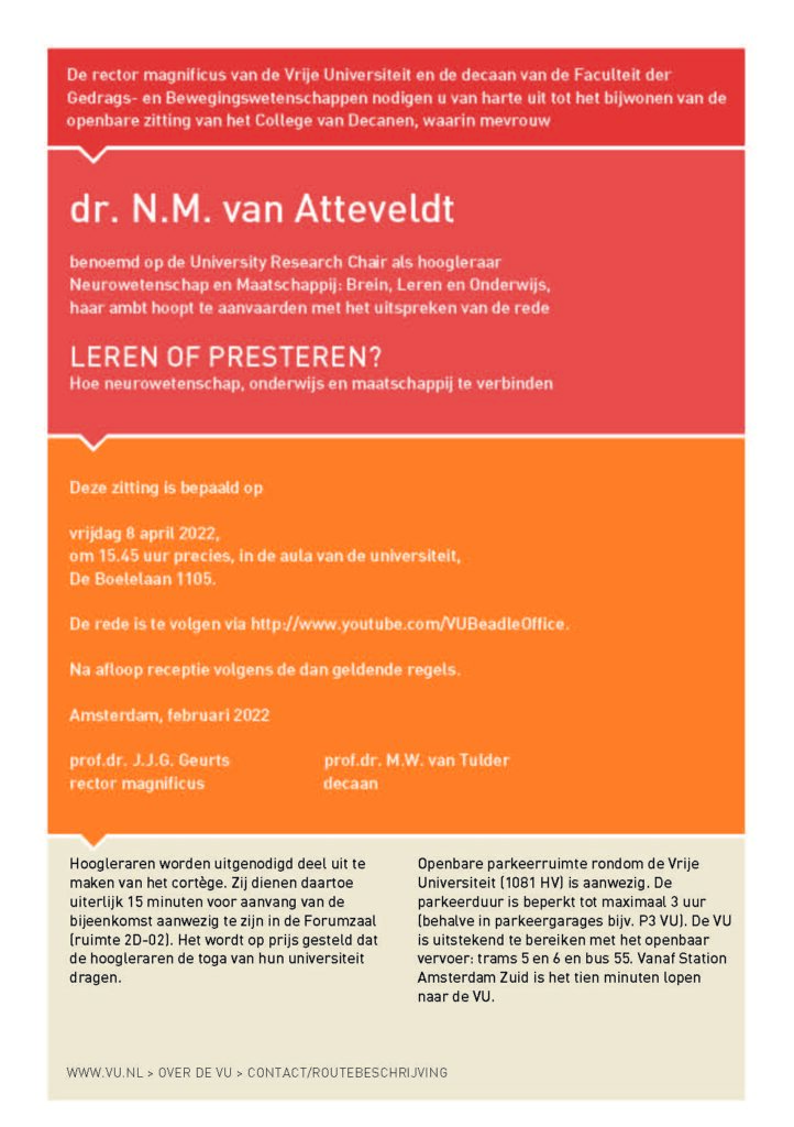 Oratie Nienke van Atteveldt: “Leren of presteren? Hoe neurowetenschap, onderwijs en maatschappij te verbinden”