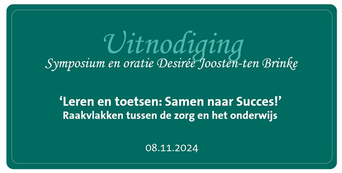 Leren en toetsen: Samen naar Succes! Raakvlakken tussen de zorg en het onderwijs 8 november 2024 Op 8 november vindt het symposium ‘Leren en toetsen: Samen naar Succes!’ plaats. Het symposium is de warming-up voor de oratie van Desirée Joosten-ten Brinke en laat de…
